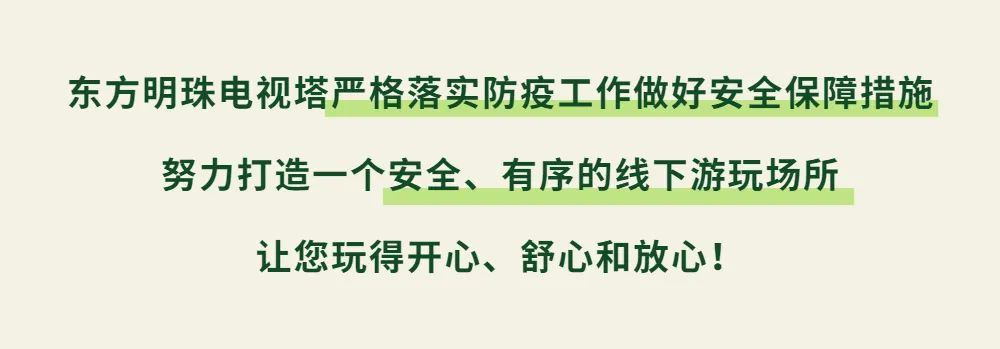 6月1日起,东方明珠塔259米户外全透明悬空观光廊、90米户外观光廊及明珠户外卡丁体验中心将先行开放!6月1日-6月30日,凡身高1.4米(含)以下儿童均享受免费入园参观优惠(小朋友须有成人陪同入塔)。东方明珠电视塔也将严格落实防疫工作做好安全保障措施,努力打造安全有序的线下游玩场所!先来看看入园须知吧👇