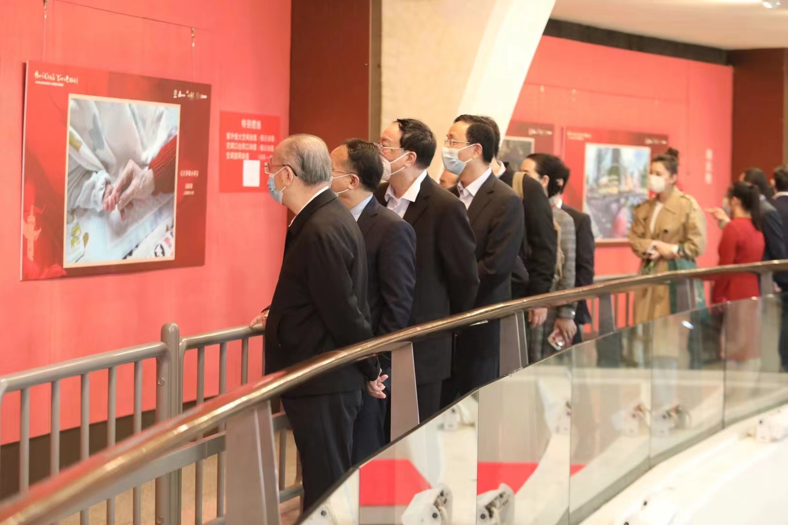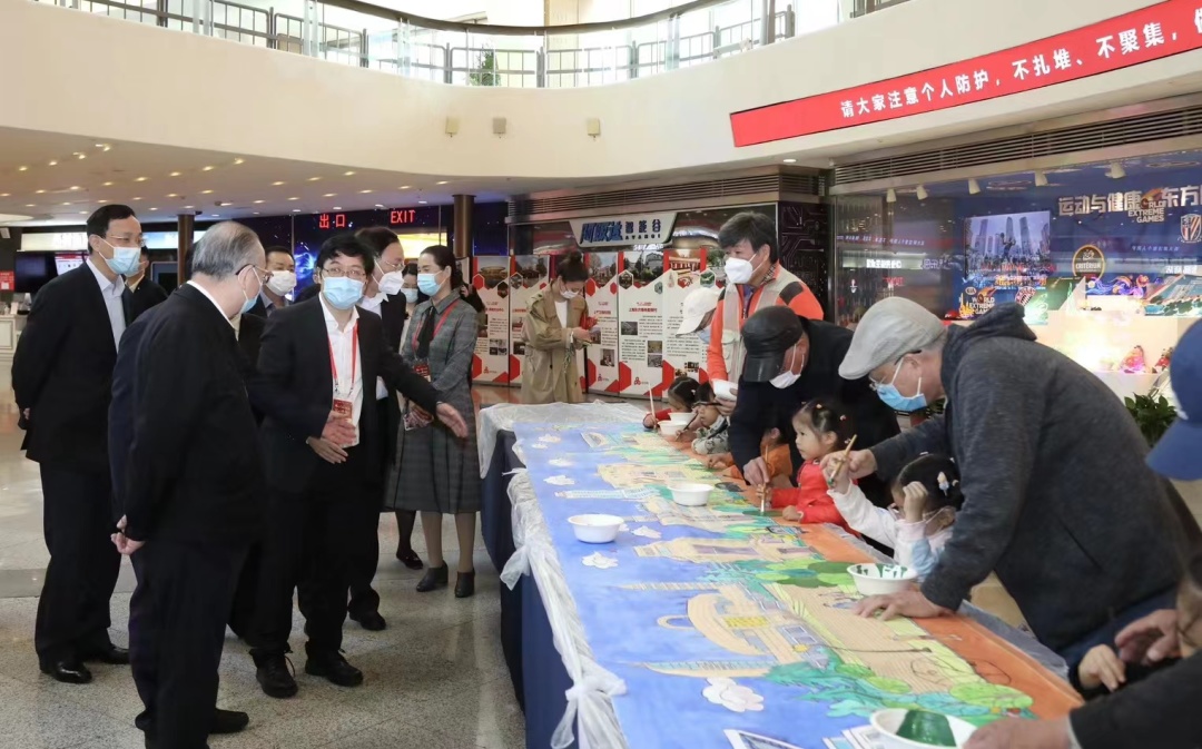 在电视塔零米大厅分会场,白发老人与少年儿童“大手牵小手”共同绘制歌颂美好生活的长卷。在电视塔4.2米城市长廊,老年大学学员的优秀摄影作品在此展示,通过他们的镜头,记录下生活的美好和社会的发展进步。