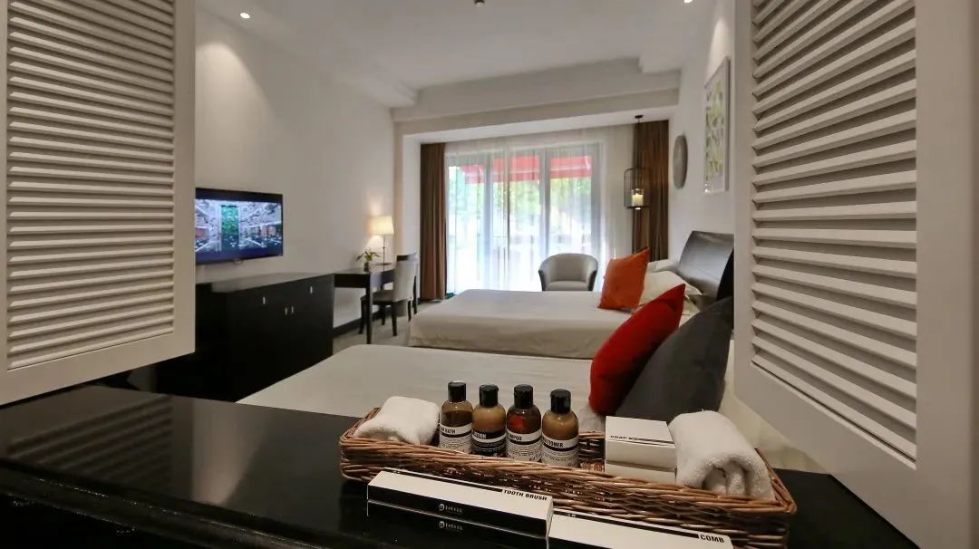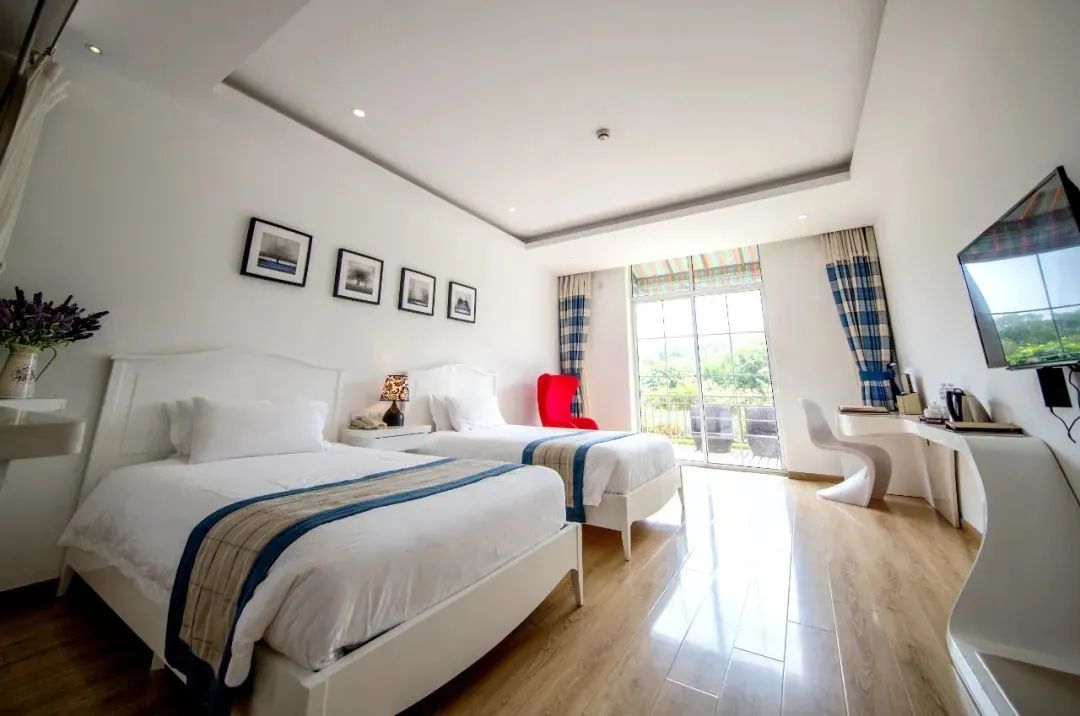 各种类型客房均洁净舒适,低调简约又不失设计感。室内恬静清幽,室外风景如画。