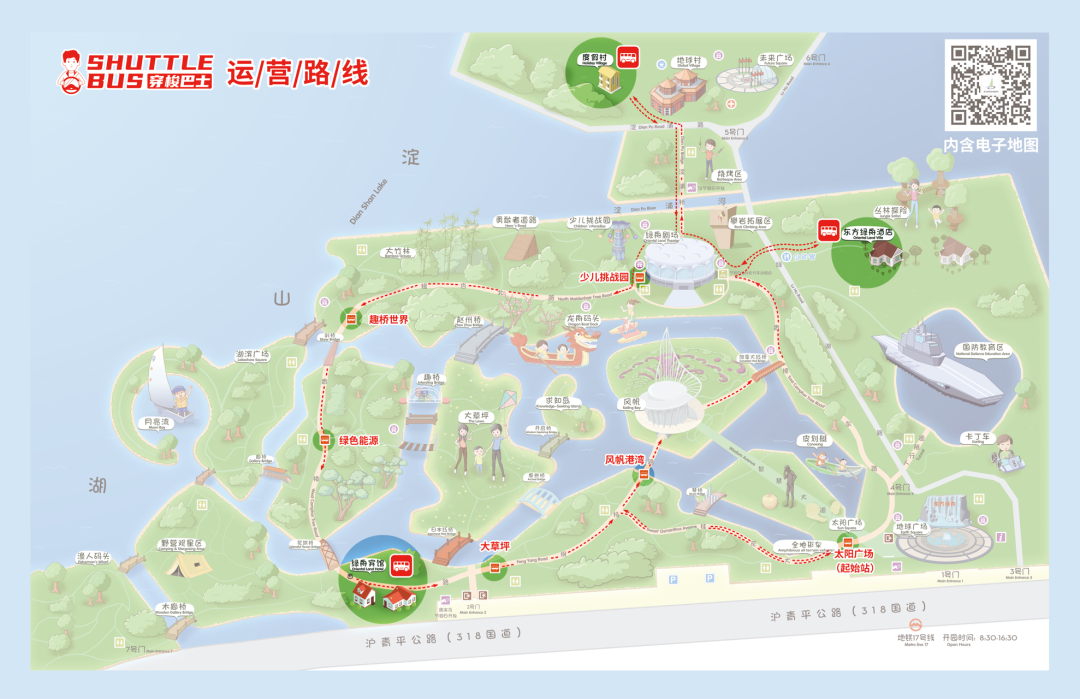 交通更加便捷:东方绿舟将开启Shutter Bus(2023年1月1日起正式运营),起点为太阳广场(1号门),便于将景区游玩的客人摆渡至三家度假酒店用餐、住宿,同时也能将度假酒店客人摆渡至景区参观游览。