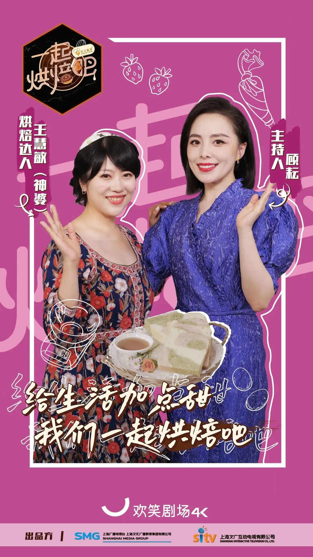 《一起烘焙吧》是继《国厨来了》后,又一档在4K超高清频道欢笑剧场播出的4K超高清自制节目。《国厨来了》让大家体会到“食不厌精脍不厌细”的精致国宴料理,那么这档最新的诚意之作《一起烘焙吧》,将在之后3个月的时间里,带领大家一起进入美妙的甜品世界,用美味甜品和温暖故事陪伴你度过这个冬天。