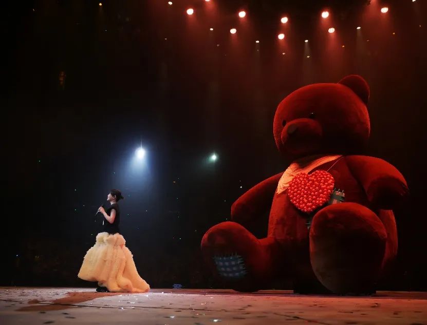 豪华舞美突破距离的阻碍完整搬运,飞天鲸鱼和五米高巨型爱的抱抱熊坐落场馆,环环相扣极光天台、360零死角旋转舞台……满满的奇幻惊喜令现场观众惊艳并震撼不已,豪华歌单更是狠狠戳中歌迷泪点。