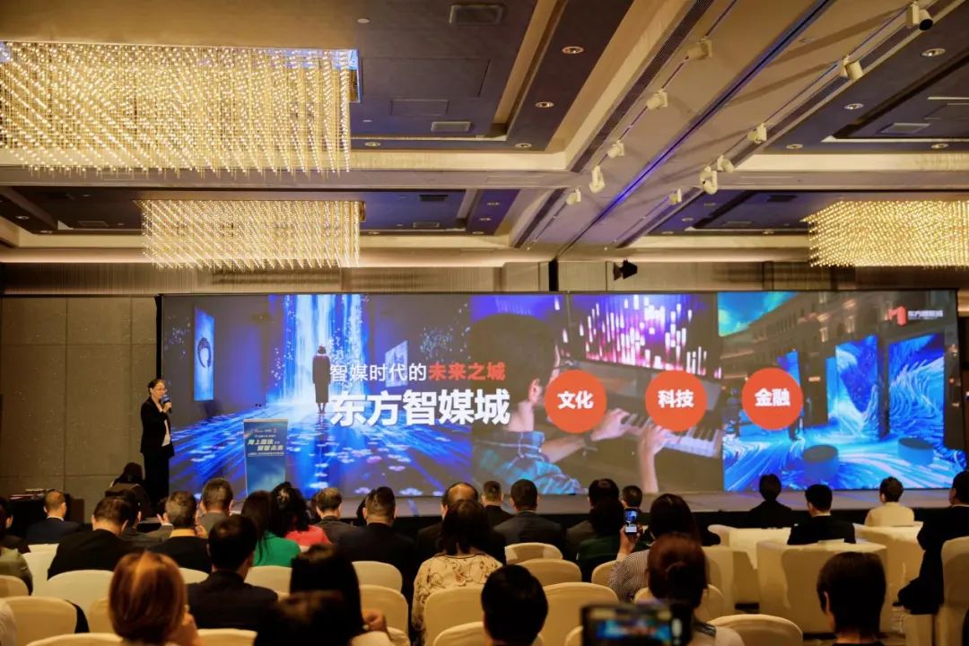 上海东方明珠房地产有限公司总经理崔一楠在推介会上详细介绍了东方智媒城项目。东方智媒城位于闵行区浦江镇核心区域,总体占地约400亩,建筑总量近100万方,计划于2024年落成。项目围绕“共享”“智慧”“活力”三大核心理念,建设具有国际品牌影响力的音视频文化科技集聚区。通过引入人工智能、物联网、大数据等新兴产业技术,提供包括数字底座共享、版权服务及创新投融资的一站式服务;通过先行导入上海文广集团及东方明珠新媒体部分旗舰业务,为园区发展提供技术支撑及产业链主引领;依托长三角、京津冀及大湾区的合作伙伴,吸引大文娱、科技类相关投资、生产、发行贸易类企业及产业链上下游企业入驻,共筑“上海智造”,打造全球音视频产业的新磁场。