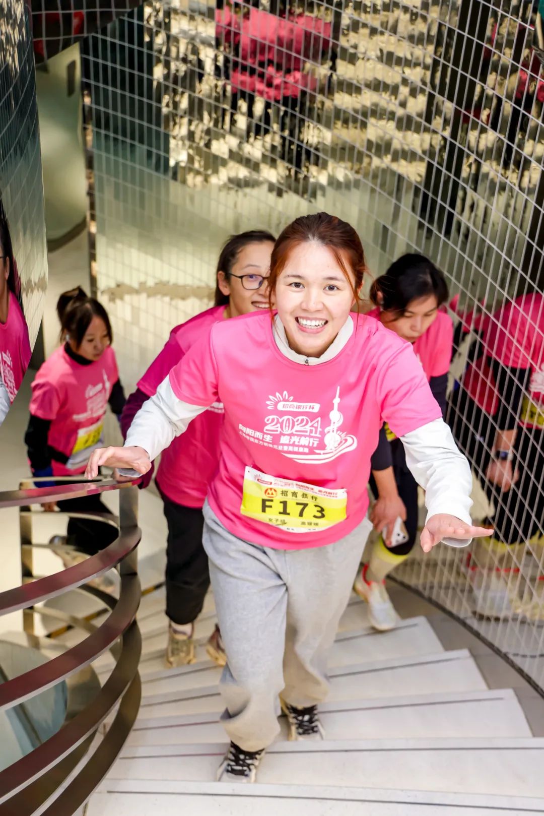 来自社会各界的登高选手从东方明珠城市广场出发,兴致高昂地向位于259米全透明悬空观光廊/90米户外观光廊的终点发起挑战,身体力行记录红红火火的2024年第一天。