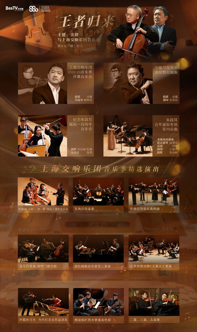 百视通“云演艺”产品持续丰富优质内容供给。近日,集中上新15场上海交响乐团演绎的重磅音乐会,在百视通IPTV、互联网电视及东方有线等平台大屏独家呈现,内容囊括《王者归来 王健、余隆与上海交响乐团音乐会暨好友「健」面会》《纪念朱践耳诞辰一百周年音乐会》等超过1000分钟的重磅内容。