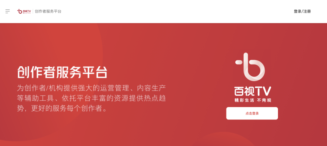 百视TV创作者服务平台 首页截图