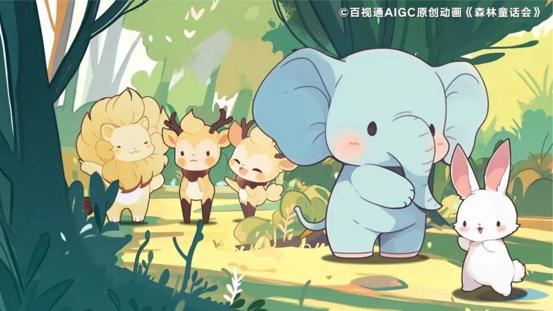 百视通还以AIGC技术打造出少儿动画的奇幻世界,利用AI生成的故事脚本,搭配精心设计的画风与角色造型,充分放飞创作的想象力。场景描述生成单帧画面,再通过视频串联,将故事生动呈现出来。