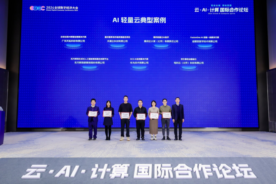 近日,由全球数字经济大会组委会主办,中国信息通信研究院(以下简称“信通院”)、中国通信企业协会承办的2024全球数字经济大会云·AI·计算国际合作论坛在北京成功召开。会上隆重发布了2024年“AI Cloud助力大模型场景化和工程化落地”典型案例评选结果,东方明珠新媒体股份有限公司生成式人工智能媒体融合创新平台荣获2024年度AI Cloud轻量云典型案
