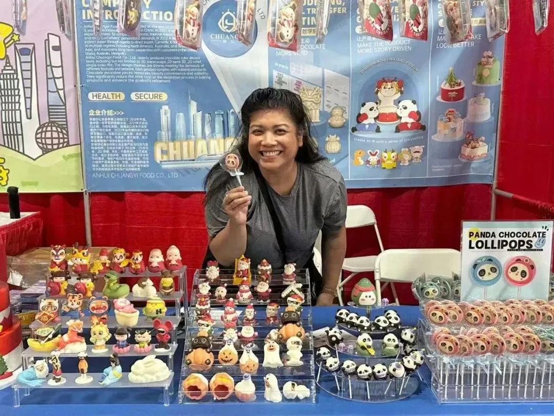 除此之外,众多原创IP凭借独特的设计引人驻足。上海寅婷文化带来其原创 IP “迷闪闪”周边衍生品,宁波创源文创带来与中国工艺联名设计的敦煌系列文具、丝路花开陶瓷礼盒,安徽创亿食品带来3D 卡通立体蛋糕装饰,每一款都像是一件精美的艺术品。
