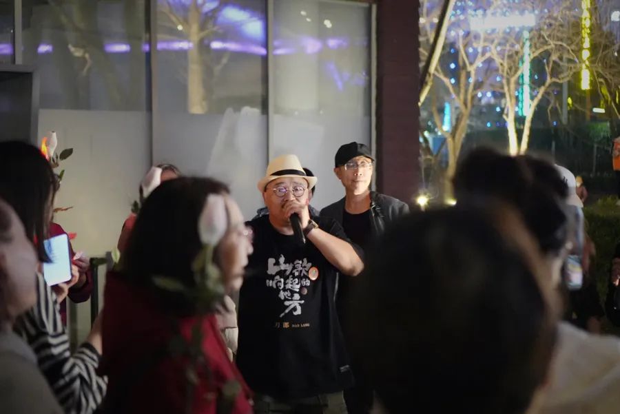 一位“刀迷”唱起《情人》,周围的人挥舞着手中的玫瑰花应和