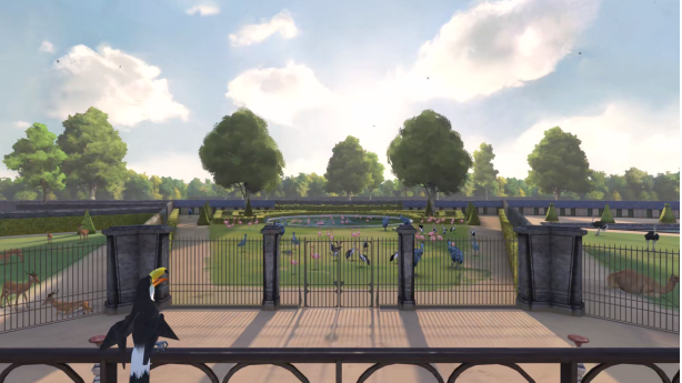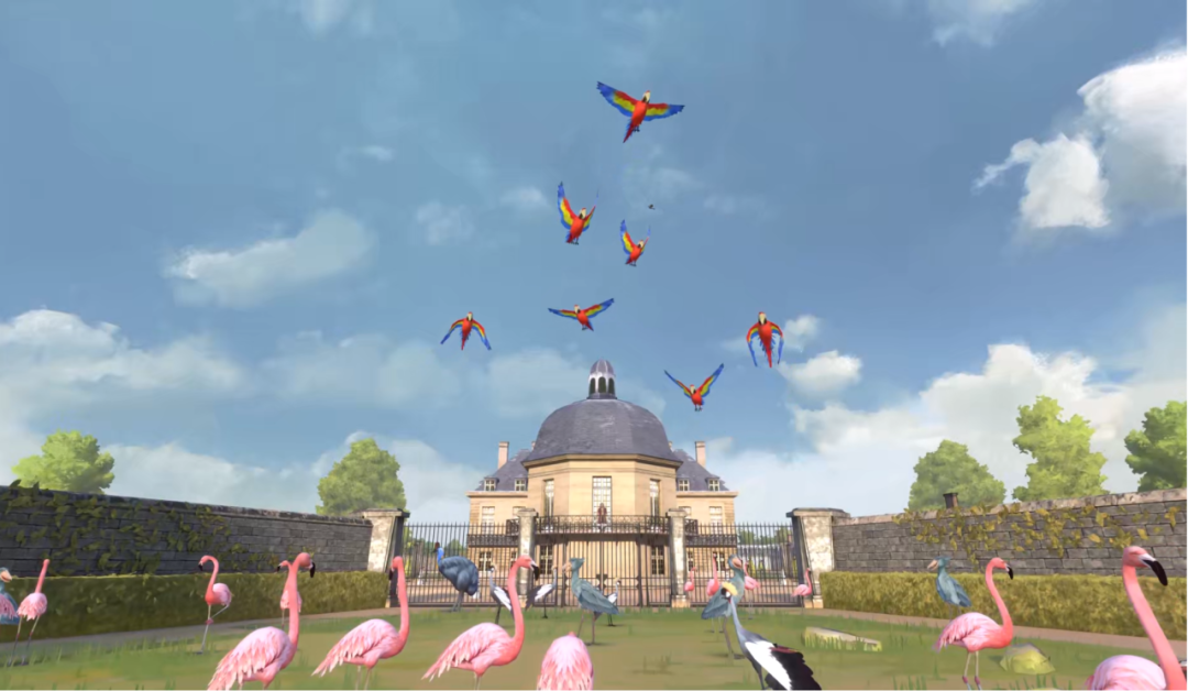 佩戴HTC VIVE Focus Vision头显,观众就能穿越到1682年的凡尔赛宫。除了跟随虚拟讲解员沉浸式逛凡尔赛宫以外,还有更多互动玩法等你解锁,包括:在皇家动物园,触摸“远渡重洋”的小动物;来到忒提斯石窟,在光影水幕间与路易十四“面对面”,听他亲自阐述凡尔赛宫的艺术理念;还能在迷宫林地中自由穿梭,获得真实的冒险体验。这种深度参与打破了传统文化展览的单向传播模式,使观众从历史的“旁观者”转变为“亲历者”。