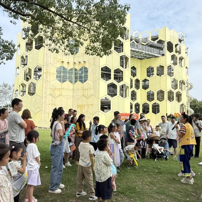 10月1日当天,园区精心策划国庆升旗仪式,吸引大批市民游客驻足致敬,点燃爱国情怀;同期推出的军事航空气模展,展陈多款经典火炮、战机及导弹,成为科普教育与国防教育的生动课堂;魔术杂技表演和非遗竹编体验进一步丰富市民游客体验,在阖家同乐中感受浓浓过节氛围。此外,湖畔露营、蜂巢塔、马术体验、直升机等项目也受到游客欢迎。