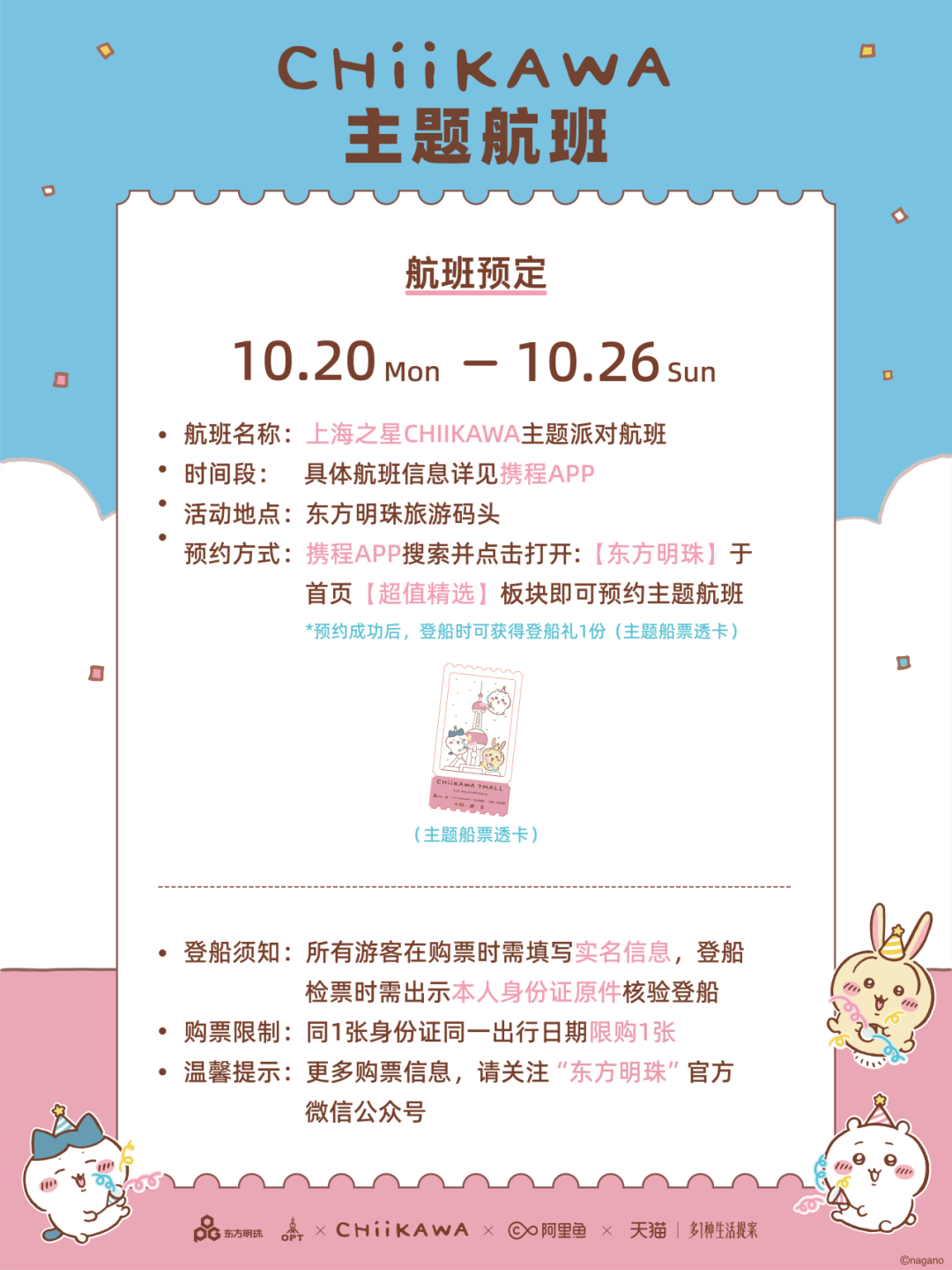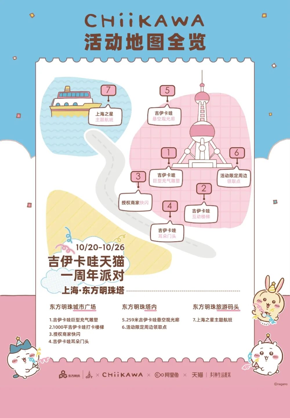 10月20日至10月26日,“吉伊卡哇天猫一周年派对”将在上海东方明珠盛大启幕。活动覆盖东方明珠塔、城市广场与“上海之星”游船三大区域,共同构成连贯的主题体验场景。